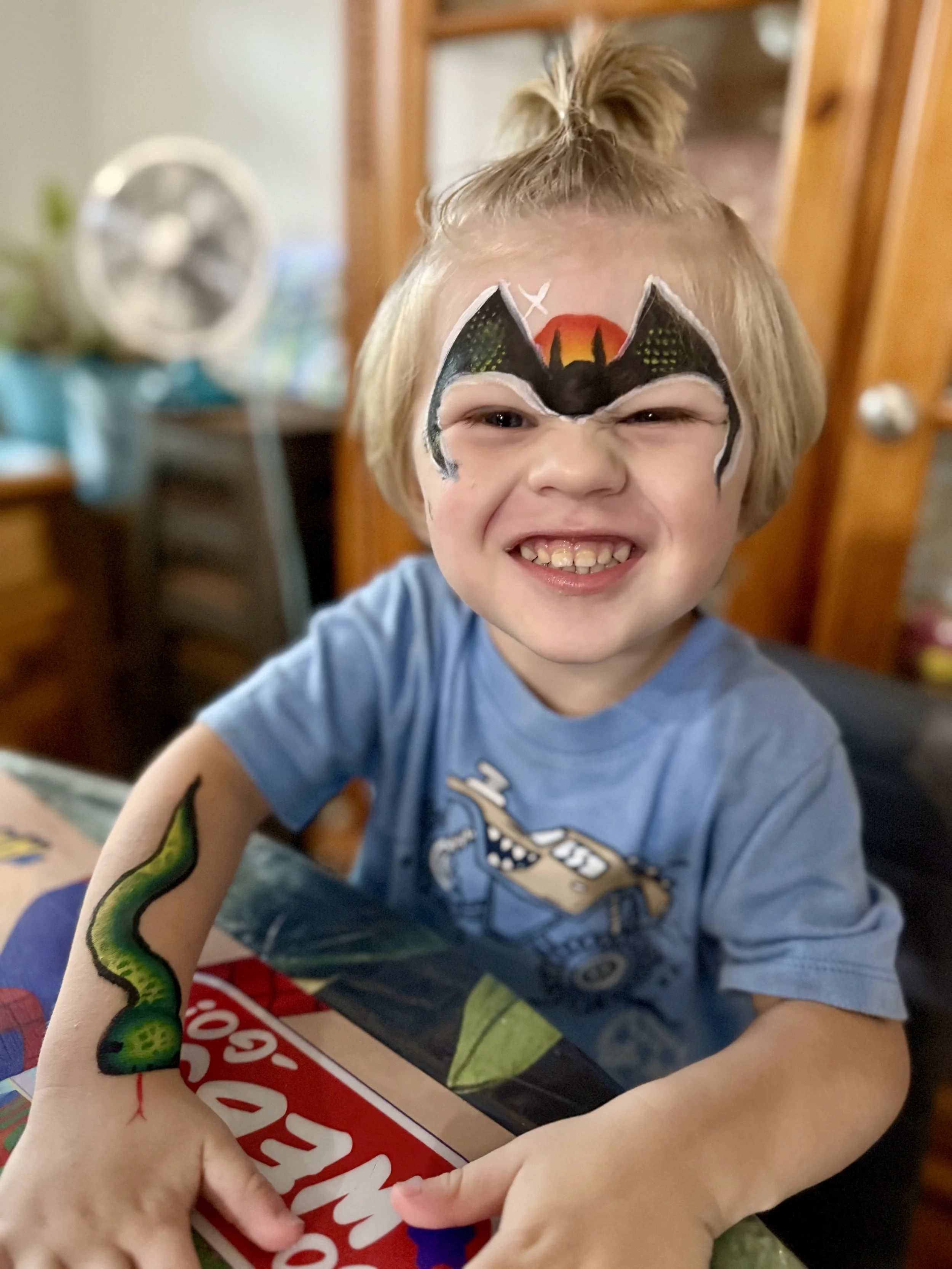 For all events I offer 10 board designs. These designs currently consist of: Mermaid, Spiderman, Unicorn Batman, Fairy, Shark, Rainbow, Dragon, Flower crown, and Minecraft creeper. All of these designs are half face designs and a finishing touch of glitter (if desired).